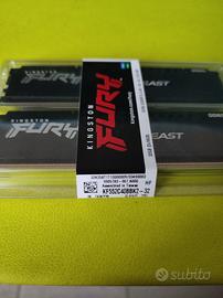 32GB (2x16GB) DDR5 5200MT/s CL40 FURY Beast Black XMP Non-ECC Unbuffered DIMM (Kit of 2) 1RX8 40-40-40 1.25V 288-pin 16Gbit Numero di parte: KF552C40BBK2-32