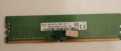 Vendo , per errato acquisto , RAM per workstation e server marca SKhynix : modulo DDR4 SDRAM 8GB , Architettura 1Rx8 PC4 , Velocità 2400MT/s (2400 MHz ) , Tensione : 1,2 Volts , ECC . Aperta solo per foto .