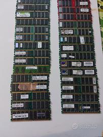 Disponibili circa 50 banchi di memoria RAM tipo DDR, (slot con 1 tacca). Varie capacità, single o double sided. CL 2, 2.5, 3. Elenco di dettaglio con marca e modello disponibile su richiesta.