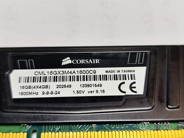 corsair cml16gx3m4a1600 4gb pc3 10.700 ddr3 1333 per un totale di 16gb