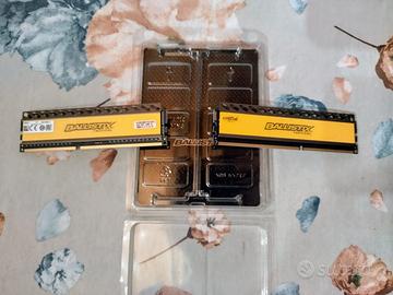 Memorie RAM DDR 3 Crucial Ballistix Tactical, 16 GB in totale (4 x 4 GB). 1600 MHz PC3-12800 UDIMM non ECC CL8 (8-8-8-24 timings) 1.5V. RAM ad alte prestazioni con dissipatori. Due sono nuove, le altre due usate poco da un precedente progetto.