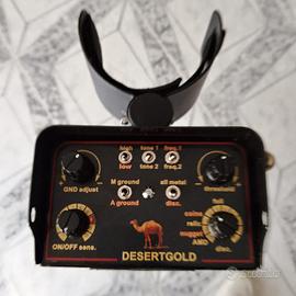 Il Detech DESERT GOLD 3 è un metal detector analogico davvero potente e versatile. Capace di prestazioni straordinarie in ogni condizione di terreno, può lavorare in modalità MOTION con discriminazione o QUASI-NO MOTION, ideale per chi fa ricerche militaria. Il detector permette di avere sia un bilanciamento automatico del terreno di tipo "tracking", sia un sofisticato controllo manuale per il top delle prestazioni. Questa nuova versione del metal detector è stata ottimizzata per migliorare ancora di più la stabilità operativa ed è dotata della eccezionale piastra Ultimate DD, la più potente al mondo. Con un peso di soli 1600 grammi, permette lunghe sessioni di ricerca senza affaticarsi. Il Desert Gold 3 è alimentato con 4 pile AA Stilo ricaricabili NiMH (fornite in dotazione insieme al caricabatterie) ed ha una autonomia di 20-30 ore. Il metal detector è controllato attraverso potenziometri analogici a rotazione e switch meccanici. È dotato di BOOST di sensibilità (Modalità HIGH), regolazione del tono audio, variazione di frequenza per ridurre i disturbi esterni e LED di controllo dello status della batteria.