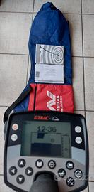 Minelab E-Trac usato in perfette condizioni , carica batterie, due pacchi batteria stilo e ricaricabile borsone copri schermo piastra da 11'' DD FBS tutto originale prezzo trattabile .No scambio.