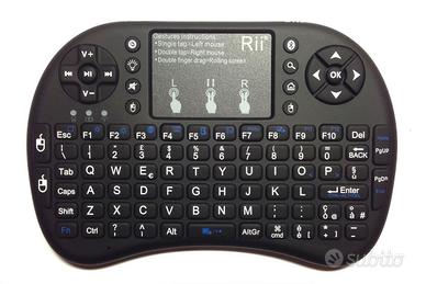 o Mini Tastiera Bluetooth "Rii mini i8" ricaricabile tramite porta USB o alimentatore di cellulare