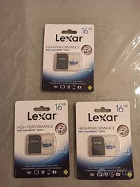Scheda di memoria micro SD, marca Lexar, da 16 GB. Nuova, sigillata. Tre disponibili, prezzo unitario 10 €. Se acquistate in blocco 25 €.