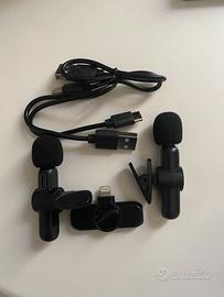Vendo set di microfoni wireless lavalier compatibili con iPhone/iPad con ingresso Lightning (non compatibili con i modelli più recenti con USB-C). Perfetti per interviste, vlog, dirette streaming, podcast e video social. ✅ Connessione wireless stabile ✅ Supporta fino a 2 microfoni contemporaneamente ✅ Plug & Play: basta collegare il ricevitore al telefono, nessuna app necessaria ✅ Qualità audio buona con riduzione del rumore Condizioni: Usati solo 3 volte, in ottime condizioni. Completi di scatola originale, ricevitore Lightning, 2 microfoni con clip e cavo di ricarica.