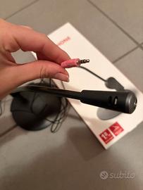 Microfono pc Trust funzionante. Si adatta ad ogni pc con il cavo jack. Ha anche lo sdoppiatore per le cuffie