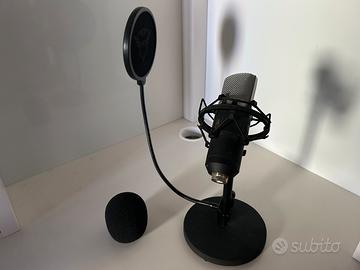 Trust Gaming GXT Microfono Streaming USB con base e Filtro Pop, per Canto, Podcast, Streaming, Voce, YouTube. Completo di cavo di collegamento