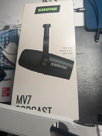 Microfono Shure MV7 (a differenza dell’MV7X presenta dia interfaccia usb che XLR),con scatola e manualistica originali e cavo XLR in omaggio,ottimo per streaming,video e podcast o per avere un’ottima qualita audio in call