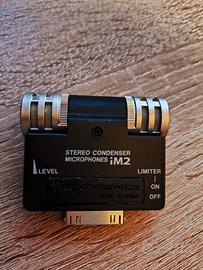L'iM2 trasforma un iPhone, iPad o iPod Touch in un registratore stereo di alta qualità. E' costituito da una coppia di microfoni a condensatore, della stessa qualità dei registratori della serie DR Tascam, che si collegano direttamente via dock alla periferica Apple. Il corpo dei microfoni unidirezionali è aggiustabile fino a 180 gradi per un posizionamento ottimale. Il pattern AB consente registrazioni dettagliate che includono anche l’ambiente della stanza. IM2 contiene un preamplificatore microfonico ed un convertitore analogico- digitale con riduzione del fruscio. Al contrario dei microfoni che utilizzano il preamp dell’iPhone, l’iM2 può sopportare pressioni sonore fino a 125 dB per catturare suoni a livelli elevati senza distorsione. E’ anche possibile utilizzare un limiter. Il livello di ingresso può essere regolato con una manopola sul fianco dell’apparecchio. L’alimentazione avviene via connettore dock e non è richiesta alimentazione a batterie.