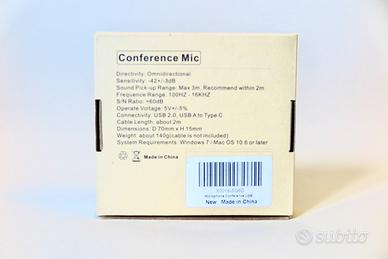 Microfono USB per Conferenze, Microfono Omnidirezionale a Condensatore per PC e Computer con Pulsante Muto per Riunioni/Lezioni Online, Chiamate Zoom, Chat Skype, Plug and Play.