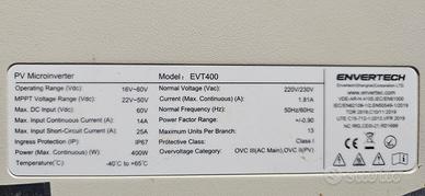 Vendo Microinverter Plug Play Envertech EVT400, acquistato in luglio 2024.