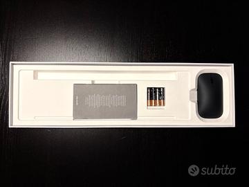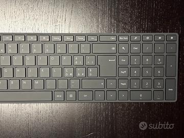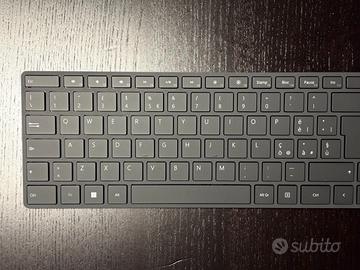 Kit tastiera e mouse Microsoft Designer Bluetooth Desktop: mai utilizzato, scatola aperta ma contenuto intatto (le pile sono ancora incellophanate nell'imballaggio originale). Caratteristiche principali: — Tastiera full-size ultrasottile con tastierino numerico, tasti a isola silenziosi — Mouse con sensore ottico BlueTrack: funziona su qualsiasi superficie, vetro compreso — Connessione Bluetooth 4.0: niente dongle, niente cavi, niente ingombro — Design premium minimalista, nero opaco, profilo bassissimo — Tasti rapidi per media, calcolatrice, browser e ricerca — Batteria a lunga durata (pile incluse, ancora sigillate) — Compatibile Windows e Android Ideale per chi cerca una postazione pulita ed elegante, senza fili e senza compromessi sulla digitazione.