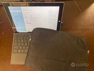 Vendo Microsoft Surface 3 tablet, con Windows 10, completo di cover/tastiera bluetooth, custodia morbida e alimentatore.