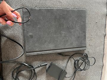 Microsoft surface 4 pro con tastiera e caricatore originali, sempre tenuto con una cover di protezione, che lascerò in confezione per una maggiore protezione durante il trasporto, nonostante sia rovinata fa il suo lavoro, e un vetro protettivo temperato ancora applicato. Il tablet monta un intel core m3, 4gb di ram e 128 gb di ssd, è installato windows 10 pro 22h2. Regalo in più penna microsoft slim 1 SENZA annesso caricatore (l'ho perso e attualmente la penna è SCARICA). Il caricatore ha la gomma esterna rovinata in un punto ma funziona perfettamente. Le condizioni sono estremamente come in foto vi invito a guardarle tutte. Non ho la scatola originale
