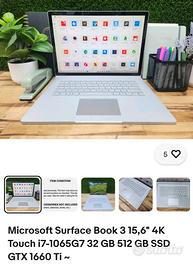 Microsoft Surface Book 3 15" POLLICI AMOLED Intel Core i7-1065G7-32 GB RAM -SSD 512 +UNPGRADE SD GB- Windows 11 PRO - 3240 x 2160 Pixel - NVIDIA GeForce GTX 1660 Ti Max-Q 6CB - MICROSOFT DIAL PER DISEGNO E GRAFICA -SURFACE PEN (PENNA 4000 LIVELLI) -SURFACE MOUSE