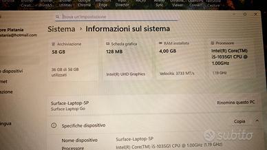 Vendo Microsoft Surface Laptop Go, perfettamente funzionante, nessun segno di usura dovuto all'utilizzo (come visibile in foto), utilizzato con monitor esterno.