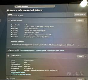 Come da titolo vendo Microsoft Surface Pro 11. Chip Snapdragon Xplus 10 core, condizioni assolutamente PARI AL NUOVO (utilizzato solo per contenuti multimediali). Specifiche del Dispositivo: Modello: Microsoft Surface Pro 11 X Elite Copilot+ PC Processore: Snapdragon X Plus 10 core Memoria RAM: 16 GB Archiviazione SSD: 256 GB Sistema Operativo: Windows 11 per processori arm Data di Acquisto: Novembre 2025 (in garanzia con fattura, acquistato presso unieuro). Display: Pixe Sense Flow da 13 pollici, 120Hz, 900nit. Garanzia: Coperto da 2 anni di garanzia ufficiale. Copilot: Accesso completo alle funzionalita lA di Microsoft. Connettività wifi 7 Prezzo leggermente trattabile, contattate solo se realmente interessati, non accetto scambi.