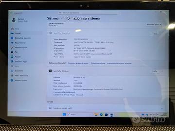 Microsoft Surface Pro 4 funzionante. Caratteristiche principali: processore i5-6300U, 4GB RAM, 128GB SSD, touchscreen 12,3 pollici. Non ci sono difetti estetici o rotture è stato tenuto molto bene. Batteria ormai con scarsa autonomia (max 50min). Eseguito aggiornamento a Windows 11 Pro. Porzione superiore dello schermo (primo mezzo centimetro) non rileva input il touchscreen. Venduto con alimentatore compatibile.