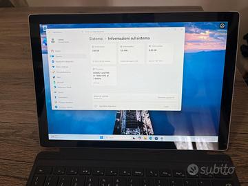 come da titolo vendo Notebook Tablet di marca Microsoft modello Surface Pro 5 con 8gb di ram e 256 gb di ssd nvme,il notebook/tablet e' in ottime condizioni e la batteria dura 6 ore circa,display perfetto e tastiera retroilluminata con pochissima usura.viene venduto con caricatore compatibile in quanto il suo non e' piu' funzionante.monta un processore core i5 di settima generazione.grazie