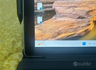 Vendo Surface pro 7, come si vede dalle foto lo schermo preseta una linea nera sotto, e all accensione delle macchie gialle che poi all avvio nn si vedono, nonostante ciò lo schermo e il tauch funziona senza problemi, per info sistema guardare la foto, dotato di tastiera e penna originale, usato 2 volte a settimana, compreso anche di caricabatterie pacco e custodia