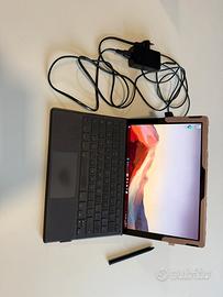 Microsoft surface pro 7 Completo di caricabatterie originale e scatola Lo vendo completo dei seguenti accessori: tastiera, custodia, penna per touch. Specifiche Tecniche Principali: Display: 12,3 pollici PixelSense™, risoluzione 2736x1824 (267 PPI), proporzioni 3:2, tocco multitouch a 10 punti. Processore Intel® Core™ i5 di 10a generazione Memoria e Archiviazione: RAM LPDDR4x (8GB); SSD da 256GB. Connessioni: 1 porta USB-C®, 1 USB-A, jack audio 3.5mm, 1 porta Surface Connect, lettore microSDXC. Fotocamere: Anteriore da 5MP (1080p full HD), posteriore da 8MP con autofocus (1080p full HD) Audio/Video: Microfoni Studio Array, altoparlanti stereo da 1.6w con Dolby® Audio™ Premium. Connettività Wireless: Wi-Fi 6: compatibile con 802.11 ad, Bluetooth 5.0. Peso e Dimensioni: 790g, 292 x 201 x 8,5 mm Sicurezza: Firmware TPM, accesso con riconoscimento facciale Windows Hello. Caratteristiche aggiuntive: Software: Windows 10 Home (aggiornabile a Windows 11). Durata Batteria: Fino a 10,5 ore di autonomia tipica. Materiali: Struttura in alluminio con cerniera integrata.