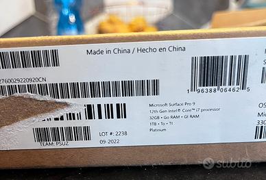Surface Pro 9 – Intel i7 / 32GB RAM / 1TB SSD – Come nuovo, usato solo 1 volta**