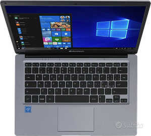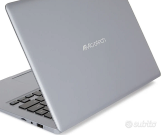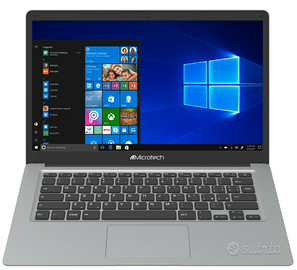 MICROTECH E-BOOK LITE 14.1" INTEL CELERON N4020 1.1GHz RAM 4GB-eMMC 64GB + SSD 240GB-WIN 10 PROF EDU GRIGIO (EBL14B/240W3) Il Microtech e-book Lite (EBL14B/240W3) è un laptop ultra-sottile e leggero, progettato principalmente per la mobilità, lo studio e il lavoro d'ufficio leggero. Questa specifica variante si distingue per il doppio storage (eMMC + SSD), che garantisce maggiore spazio e reattività rispetto ai modelli base. Scheda tecnica dettagliata: Hardware e Prestazioni Processore: Intel Celeron N4020 (Dual-Core, frequenza base $1,1 GHz$ - Turbo fino a $2,8 GHz$). Grafica: Intel UHD Graphics 600 (integrata). Memoria RAM: 4 GB LPDDR4. Archiviazione: 64 GB eMMC (memoria flash integrata) + 240 GB SSD (disco a stato solido aggiuntivo per maggiore velocità e spazio). Sistema Operativo: Windows 10 Pro Education (ottimizzato per l'ambiente scolastico e professionale). Display e Design Schermo: 14.1 pollici, pannello IPS con angoli di visione di 178°.Risoluzione: Full HD ($1920 \times 1080$ pixel). Dimensioni: 32,9 x 22,0 x 1,7 cm.Peso: Solo 1,2 kg, ideale per il trasporto quotidiano. Materiale/Colore: Scocca in ABS, colore Grigio Siderale (Space Gray). Connettività e PorteWireless: Wi-Fi 5 (802.11ac) Dual Band e Bluetooth 4.2.Porte USB: 1x USB 3.0, 1x USB 2.0. Uscita Video: 1x Mini HDMI.Espansione: Slot per MicroSD card.Audio: Jack combinato per cuffie/microfono, 2 altoparlanti integrati da 1W.Webcam: Fotocamera frontale da 0.3 MP. BatteriaCapacità: Polimeri di litio da 5.000 mAh (7.6V).Autonomia: Circa 6 ore di utilizzo medio (fino a 5 giorni in stand-by). In sintesi: È un dispositivo entry-level molto portatile, eccellente per navigazione web, scrittura documenti e video-lezioni. L'aggiunta dell'SSD da 240 GB risolve il tipico limite di spazio dei laptop economici, rendendolo molto più fluido nell'uso quotidiano.