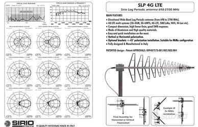 Coppia di antenne professionali direttive LPDA Sirio SLP4G-LT, da 698 a 2700 Mhz, per reti (2G-GSM, 3G-UMTS, 4G-LTE, ISM/LoRa, WiFi, W-Lan etc)