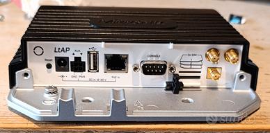 Router 4 g LTE MIKROTIK, id RBLtAP-2HnD&R11e-LTE6. Ospita fino a 3 SIM, possibilità di essere alimentato in POE o con suo alimentatore dedicato (incluso).