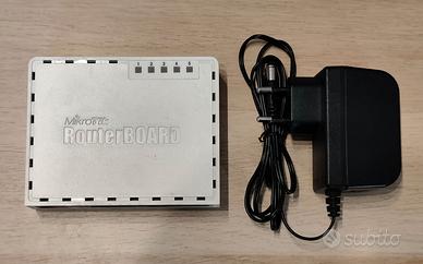 Vendo Mikrotik RB750GL, 5 porte Gigabit, aggiornato all'ultima versione di RouterOS (7.21), in buone condizioni, con alimentatore compatibile, no scatola.