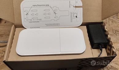 Small dual-band 2.4 / 5GHz white weatherproof wireless access point for mounting on a ceiling, wall or pole Specifications Product code RBwAPG-5HacT2HnD Suggested price $89.00 Architecture MIPSBE CPU QCA9556 CPU core count 1 CPU nominal frequency 720 MHz Dimensions 185 x 85 x 30 mm RouterOS license 4 Operating System RouterOS Size of RAM 64 MB Storage size 16 MB Storage type FLASH MTBF Approximately 100'000 hours at 25C Tested ambient temperature -40°C to 70°C Wireless capabilities Wireless 2.4 GHz Max data rate 300 Mbit/s Wireless 2.4 GHz Number of chains 2 Wireless 2.4 GHz standards 802.11b/g/n Antenna gain dBi for 2.4 GHz 2 Wireless 2.4 GHz chip model QCA9556 Wireless 2.4 GHz generation Wi-Fi 4 Wireless 5 GHz Max data rate 1300 Mbit/s Wireless 5 GHz Number of chains 3 Wireless 5 GHz standards 802.11a/n/ac Antenna gain dBi for 5 GHz 2 Wireless 5 GHz chip model QCA9880 Wireless 5 GHz generation Wi-Fi 5 WiFi speed AC1600 Ethernet 10/100/1000 Ethernet ports 1 Powering Number of DC inputs 1 (PoE-IN) Max power consumption 12 W PoE in 802.3af/at Cooling type Passive PoE in input Voltage 11-57 V Certification & Approvals Certification CE, FCC, IC, EAC, ROHS IP IP54 Other PCB temperature monitor Yes Voltage Monitor Yes