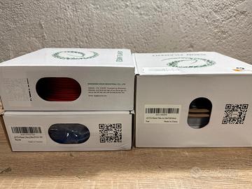 VENDO COMPRESO DI 4 ROCCHETTE FILAMENTO IN PLA DI COLORE : NERO, BIANCO, BLU, ROSSO .