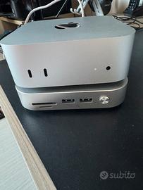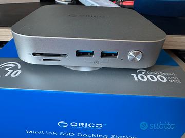 Stazione MiniLink Dock e Supporto per Mac mini M4, Hub USB C in Alluminio con Case SSD per M.2 NVMe/SATA, 2 USB 3.2 10Gbps, SD/TF 3.0, Dock Argento per Mac mini M4 / M4 Pro con alloggiamento SSD M.2.