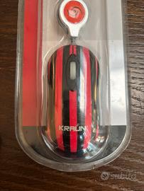 Il mini mouse ottico Kraun di colore rossonero con interfaccia USB è caratterizzato dal cavo di collegamento estensibile e retraibile e dalla forma compatta. Il suo design pensato specificatamente per l'utilizzo con notebook aggiunge al mobile computing la comodità e precisione del mouse ottico senza perdere di vista la portabilità. Il sensore ottico è costruito con la tecnologia Agilent ed ha una risoluzione di 800 dpi.