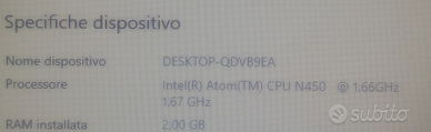 - Processore Intel Atom N450 1,67GHz (sostituita pasta termica)