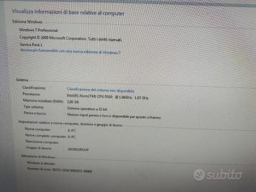 vendo mini PC Asus Intel Atom D510 1,66Ghz,2Gb ram,250Gb hard disk,wifi,tastiera e mouse.Windows 7 Pro installato
