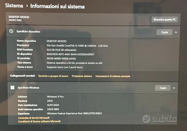 •Processore: Intel Core i5-11400 (6 core / 12 thread, 2.6 GHz base, fino a 4.4 GHz)