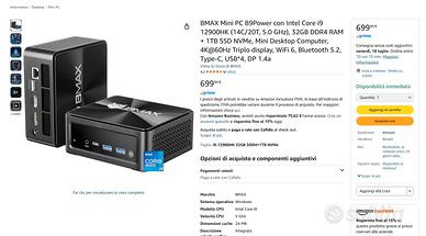 Vendo mini pc Bmax B9 Power Nuovo, mai acceso (lo proverò se richiesto prima di spedirlo).