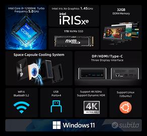✔Intel Iris Xe graphic card (visualizzazione 4K/60Hz con un massimo di 3 schermi simultanei , immagini eccellenti per applicazioni multimediali, rendendola la scelta ideale per chi ama guardare video o giocare.)