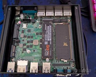 Vendo mini PC fanless / firewall appliance in ottime condizioni, molto compatto e completamente silenzioso. Configurazione: •Processore Intel N100 Alder Lake •16 GB RAM DDR5 4800 MHz •SSD NVMe Samsung 960 EVO da 250 GB •4 porte LAN ognuna da 2.5 gbps •2 uscite HDMI •2 porte seriali COM •diverse porte USB •raffreddamento passivo senza ventole Ideale come: •router/firewall OPNsense o pfSense •mini server / homelab •Proxmox / virtualizzazione leggera •server domestico •PC da ufficio silenzioso •applicazioni networking e automazione Macchina molto interessante perché consuma poco, scalda poco ed è perfetta per utilizzo continuo h24. Venduto come da foto, perfettamente funzionante. Prodotto completamente ripulito e rimesso a nuovo sostituita pure la pasta termica per una migliore dissipazione. Preferibile ritiro a mano, ma posso anche spedire. Venduto acnhe con il suo alimentatore perfetramente funzionante. Prezzo: Abbastanza trattabile, ma fate offerte.
