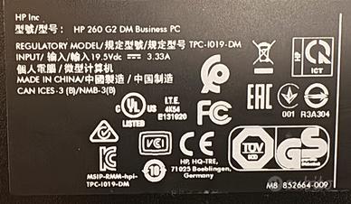 MINI PC FISSO HP 260 G2 I3 4 GB RAM 256 SSD
