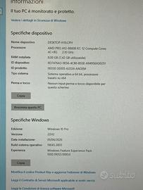 Mini PC HP EliteDesk 705 G2 in ottime condizioni estetiche e funzionali. Grazie alle sue dimensioni ultra-compatte, è perfetto per chi ha poco spazio sulla scrivania ma non vuole rinunciare alle prestazioni di un computer desktop. Su richiesta in aggiunta un monitor Specifiche Tecniche: • Processore: AMD PRO A12-8800B R7 (4 Core CPU + 8 Core GPU) @ 2.10 GHz. • Memoria RAM: 8 GB. • Archiviazione: SSD Toshiba NVMe da 256 GB (molto più veloce di un hard disk tradizionale). • Sistema Operativo: Windows 10 Pro originale (installazione pulita, versione 22H2). • Stato Disco: Analizzato con CrystalDiskInfo, salute al 92%. Condizioni del Software: Il computer è stato completamente resettato. All'accensione si avvia direttamente la configurazione guidata di Cortana: sarà come accenderlo per la prima volta, pronto per essere personalizzato con i tuoi dati e account. Cosa è incluso nella vendita: 1.Mini PC HP EliteDesk 705 G2. 2.Alimentatore originale. 3.Cavo video VGA. Spedizione possibile o ritiro in zona milano