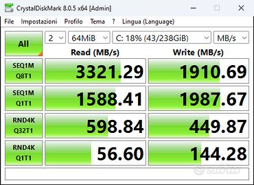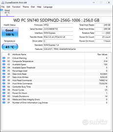 L'SSD M.2 NMVe Western Digital (nuovo solo ore di installazione: v. immagine) offre prestazioni superiori, minore latenza, migliore efficienza energetica e una maggiore capacità di gestione delle operazioni di I/O rispetto alla tradizionale tecnologia SSD SATA (v. immagine con i valori di lettura/scrittura).
