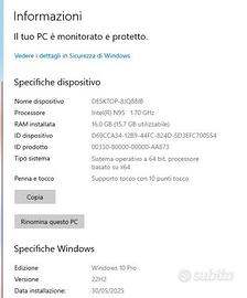 vendo mini pc intel n95 con 16gb+1t rom, con Windows 10Pro . con il monitor touch wimaxit m1560ct3. PREZZO POCO TRATTABILE