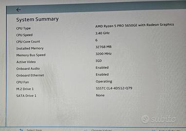 Lenovo Thinkcentre M75Q Gen.2 Tiny con: Processore Amd Ryzen 5 Pro 5650GE Chip di sicurezza TPM 2.0 integrato RAM: 32Gb - 2 banchi da 16Gb SODIMM DDR4 3200Mhz Disco SSD 512Gb PCI NvMe M.2 2242 Gen.4 Modulo integrato Intel AX200NGW M.2 2230 WiFi 6 + Bluetooth 5.1 con antenna esterna inclusa Windows 11 Pro installato OEM Computer perfettamente funzionante, usato e in ottime condizioni come da foto.