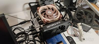 Il sistema di dissipazione della CPU e VRM adattati per rispettare le richieste di ingombri, per installare una ventola custom Noctua NF-A12A PWM sul dissipatore Noctua L12 ghost s1, per massimizzare il flusso dell'aria e la silenziosità di questo componente.