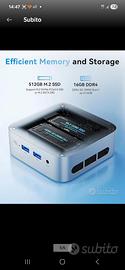 Questo mini PC è davvero compatto, quindi è perfetto per chi ha poco spazio sulla scrivania ma non vuole rinunciare a un computer affidabile. Il processoreIntel N150, in grado di raggiungere una frequenza massima di 3,6 GHz, assicura una buona reattività del sistema, a patto che si svolgano attività di base, come navigazione web, streaming, email e così via. Lamemoria RAM da 16 GBpermette di gestire senza problemi operazioni multitasking, mentre la presenza diun SSD M.2 da 512 GBgarantisce tempi di avvio rapidi e una gestione efficiente dei file.