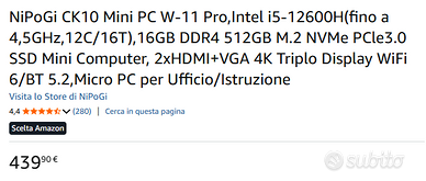 Il mini PC NiPoGi CK10 è dotato di un processore Core i5-12600H (12 core/16 thread, fino a 4,5 GHz e 18 MB di cache intelligente).