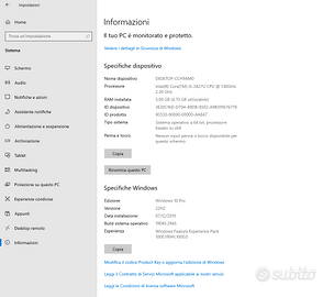 Sistema Operativo: Windows 10 già installato, attivato e aggiornato.